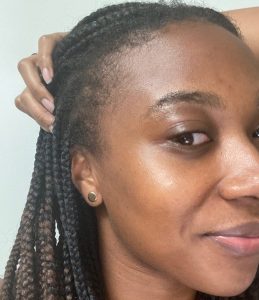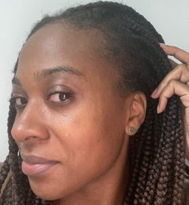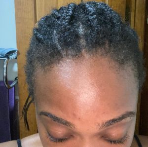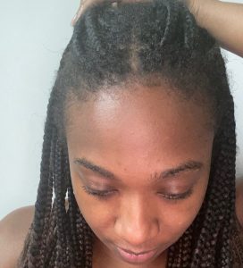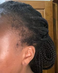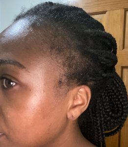 I’ve had in braids all summer. After 6 weeks, I got new knotless braids installed. I felt confident that my edges would not only be okay but thrive thanks to this Edge Naturale Follicle Enhancer. All you have to do is make sure to apply it to your edges at least once a day. Sometimes I put it on twice a day (morning and night). I look forward to even more growth in the next couple of months. Check out my before and after pics below. My edges are noticeably getting a little fuller. The more empty spots on the left and right sides are growing!